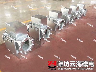 The permanent magnet separator uses a high-performance hard magnetic material to form a composite magnetic system. It has the characteristics of small volume, large magnetic force, light weight, clean iron, convenient, no energy consumption and long service life. Suitable for occasions where there is no conveyor belt and only the chute can be provided. When the bulk material passes through the pipeline type permanent magnet iron remover, the iron debris is adsorbed by the high field strength permanent magnet, and when the iron impurity is removed, the special door for opening the pipeline is used to remove the impurities. Mainly used in the cutting pipeline of cement, chemical, plastic, refractory materials, building materials and other industries to remove debris.