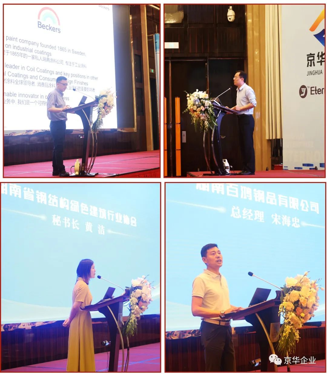 “恒新“合作方國際卷材涂料領導品牌的代表;蘭格鋼鐵網(wǎng)的李釗副總經(jīng)理;湖南省鋼結構綠色建筑行業(yè)協(xié)會秘書長黃潔女士;發(fā)表了精彩的演講。湖南百鴻鋼品有限公司總經(jīng)理宋海忠是京華企業(yè)彩涂產(chǎn)品的老用戶,代表廣大湖南地區(qū)的客戶發(fā)言。