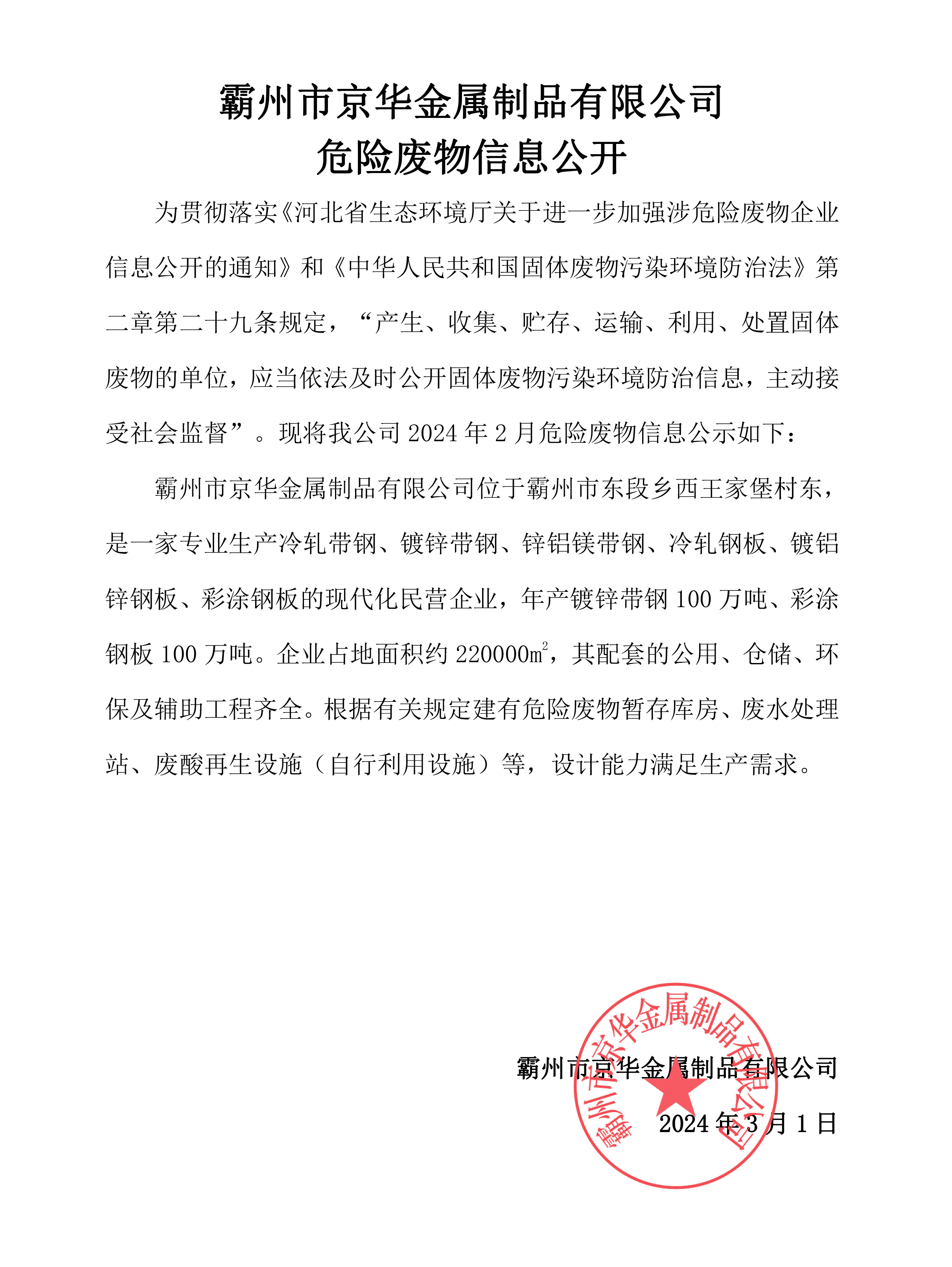 下一條:24年3月危險(xiǎn)廢物信息公開(kāi)-霸州市京華金屬制品有限公司