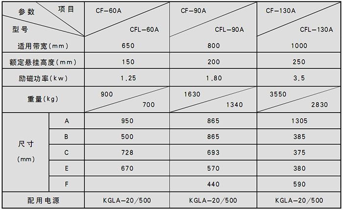 CF、CFL系列懸掛式電磁除鐵器,是國內(nèi)使用早、亦是目前使用量較多的除鐵設(shè)備,一直以操作方便,性能穩(wěn)定可靠、價錢合理,維修率低,深得用戶的信賴,全封閉的多工作磁極磁路結(jié)構(gòu),是惡劣工作環(huán)境中除鐵的常用設(shè)備。可與RCDB干式圓盤電磁除器通用。該系列產(chǎn)品由于采用計算機輔助設(shè)計優(yōu)化改進了產(chǎn)品結(jié)構(gòu)。