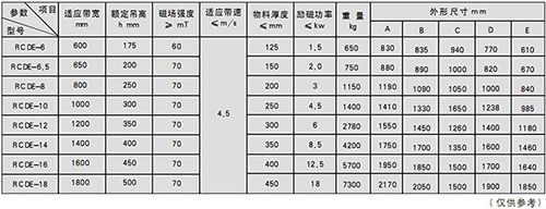 RCDE系列油冷式電磁除鐵器,內(nèi)部采用變壓器先進(jìn)技術(shù),變對(duì)器油循環(huán)涼卻,全密封結(jié)構(gòu),具有磁力大、防塵、防雨、耐腐蝕、連續(xù)工作使用壽命長(zhǎng)等特點(diǎn),對(duì)輥壓機(jī)、破碎機(jī)等機(jī)械設(shè)備起著可靠的保護(hù)作用。其主要性能指標(biāo)均過(guò)到或高于JB/T7689-95標(biāo)準(zhǔn)要求,該主品可除去混雜在非磁性物料中0.1~25公斤的鐵磁性物質(zhì)。